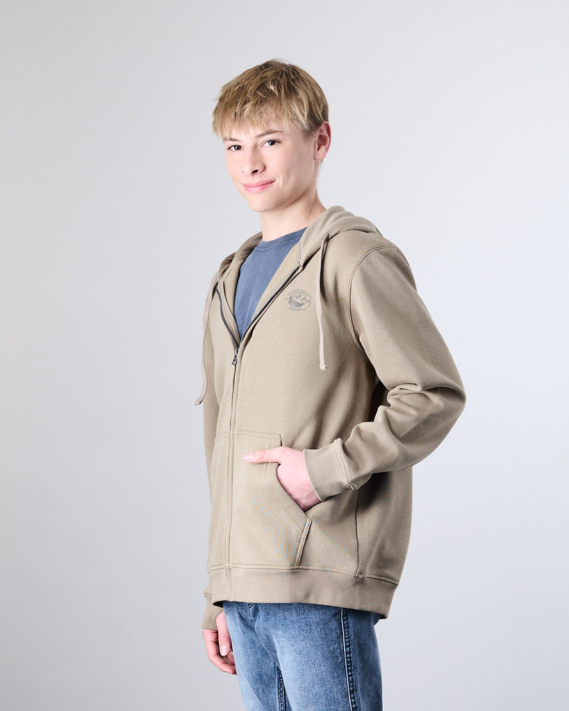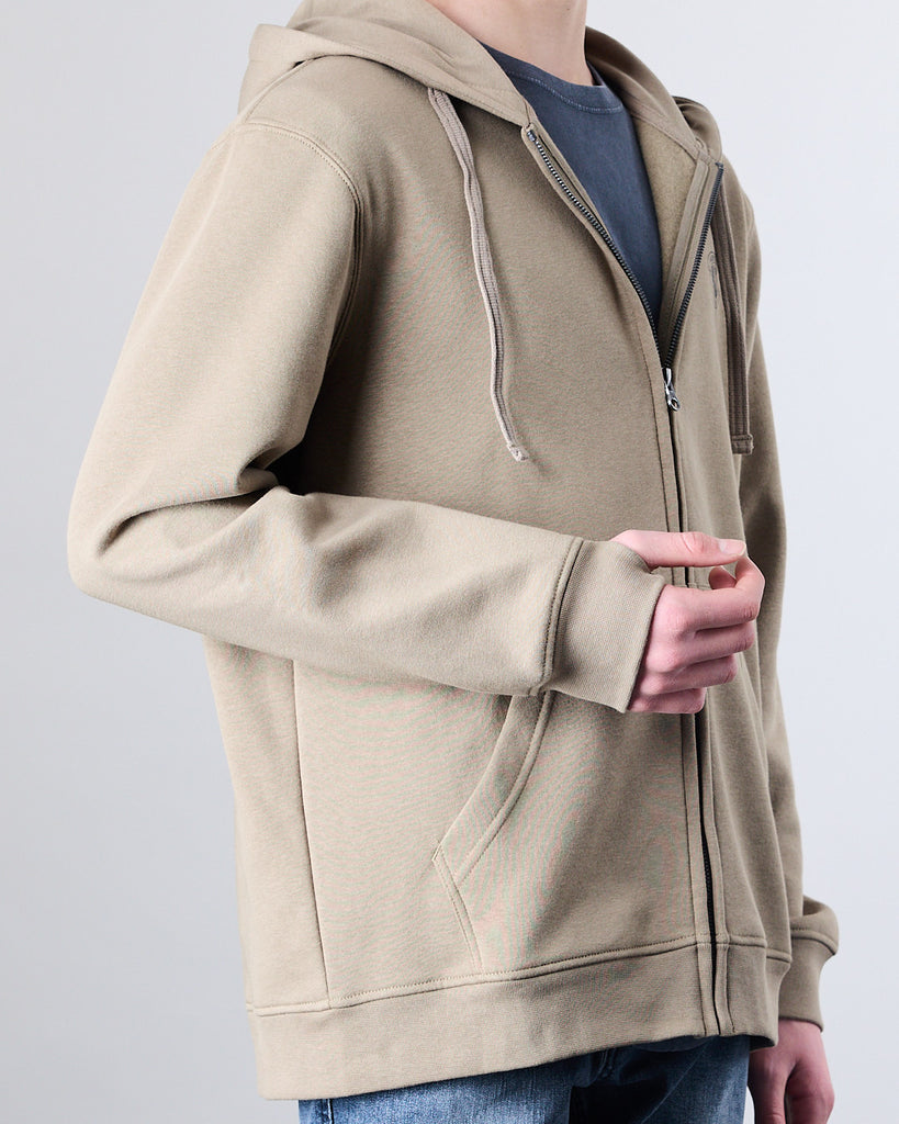 Poleron full zipper, con gorro, color liso y tela no procesada es ideal para disfrutar en la ciudad con un estilo slow fashion, fabricado con materiales de alta calidad y un enfoque en la durabilidad, esta prenda se convierte en tu compañero ideal para cada día.