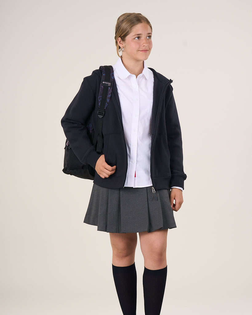 Poleron escolar mujer Polemic. Poleron colegio tipo canguro, con cierre y capucha. Uniformes Escolares Polemic te acompaña todo el año