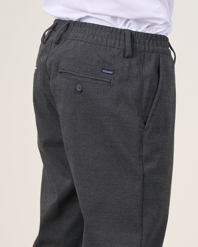 Pantalón escolar pretina elasticada con cierre metálico y botón frontal.