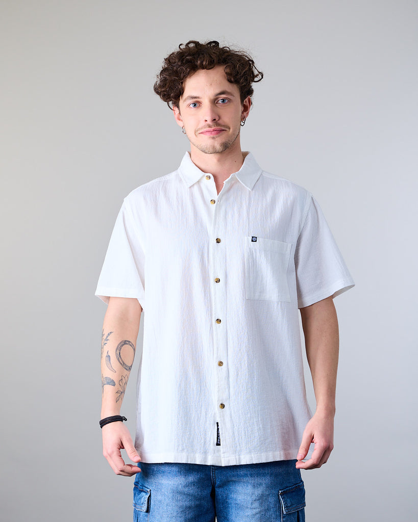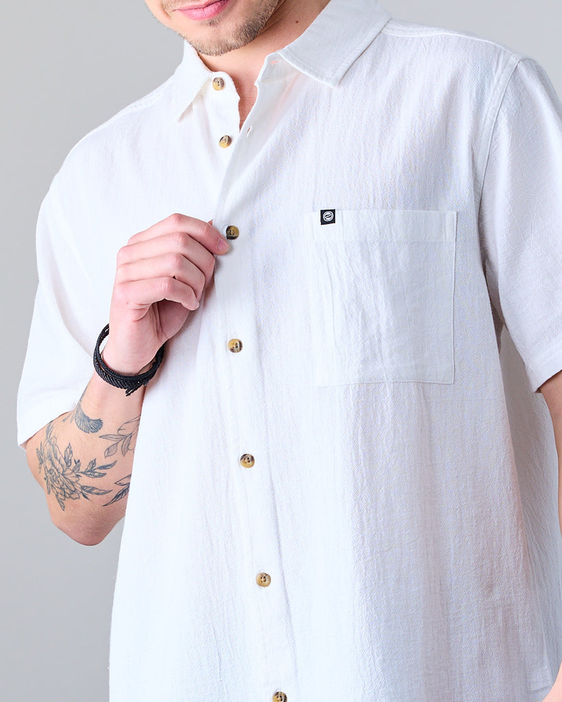 Camisa de Algodon hombre color liso, manga corta, con textura, calce Modern Fit y tela procesada es ideal para disfrutar en la ciudad con un estilo slow fashion, fabricada con materiales de alta calidad y un enfoque en la durabilidad, esta prenda se convierte en tu compañera ideal para cada día.