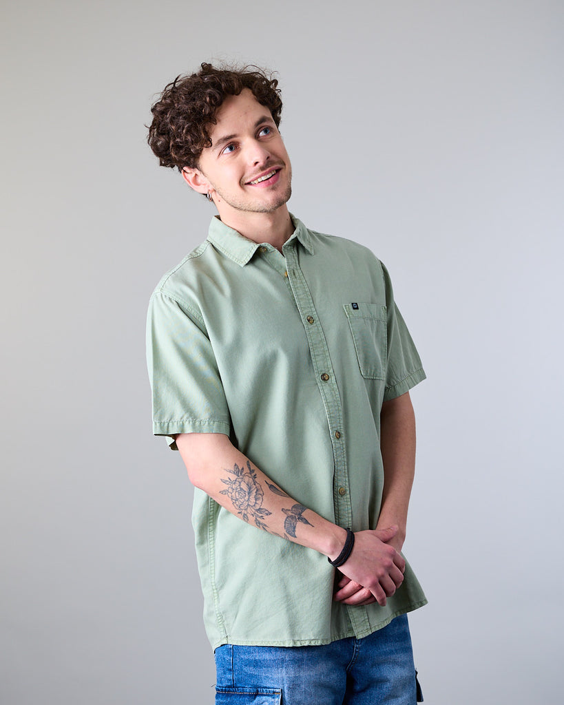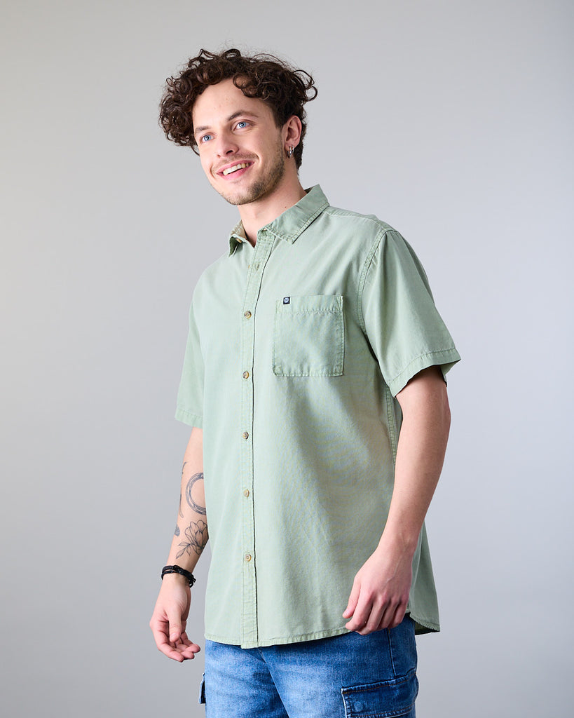 Camisa manga corta Hombre Algodón Tencel Verde XV5781