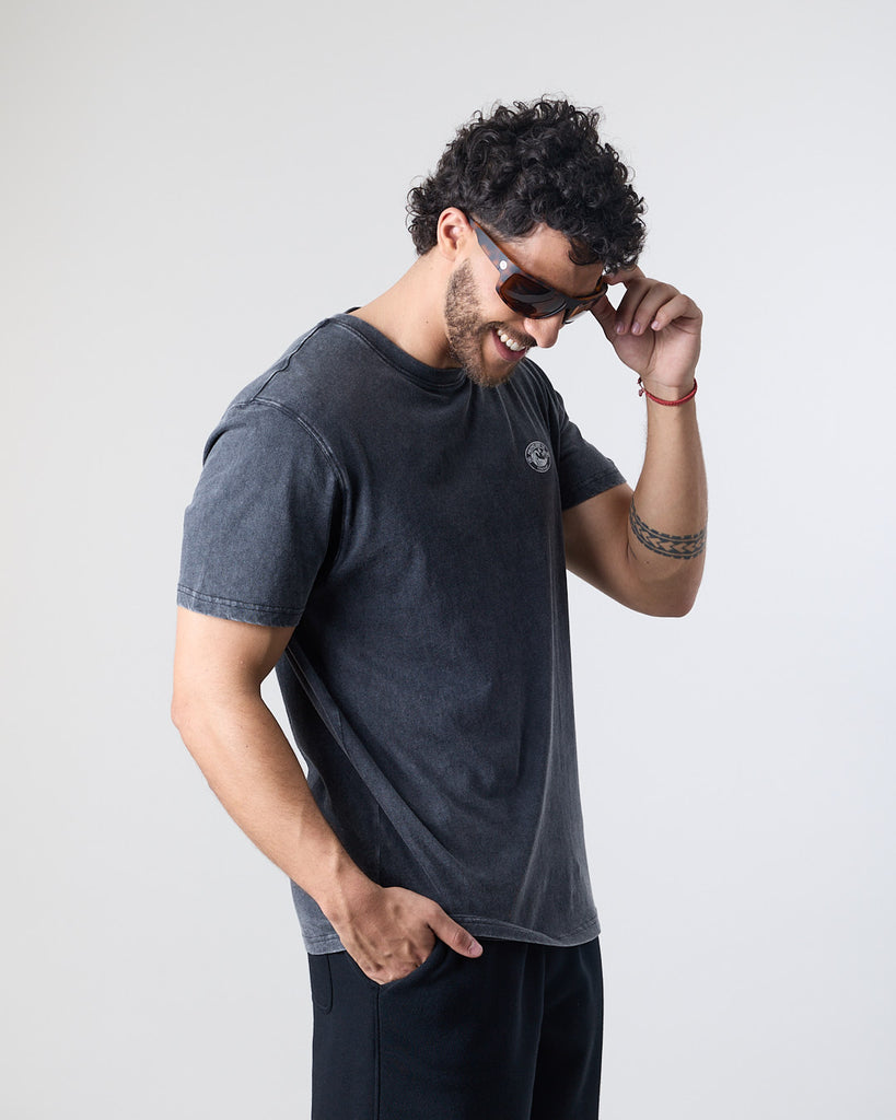 Polera manga corta hombre confeccionada con 100% algodón en tela procesada. Cuello redondo clásico y calce Modern Fit la convierten en una elección ideal tanto para la ciudad como para una salida casual. El calce Modern Fit es un corte más holgado, con una silueta suelta y relajada, pero no oversize.