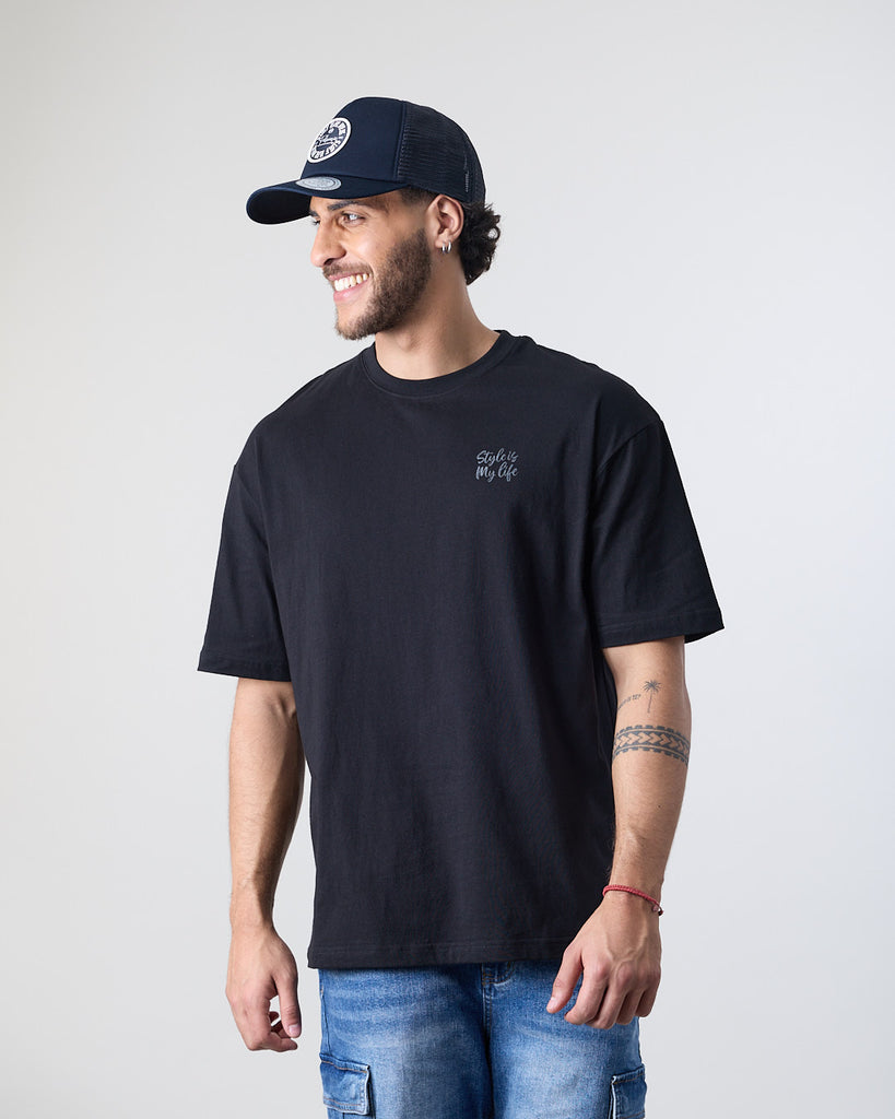 Polera manga corta hombre confeccionada con 100% algodón. Cuello redondo clásico y calce Relaxed Fit la convierten en una elección ideal tanto para la ciudad como para una salida casual. El calce Relaxed Fit es un corte más holgado, con una silueta amplia y relajada, pero no oversize.