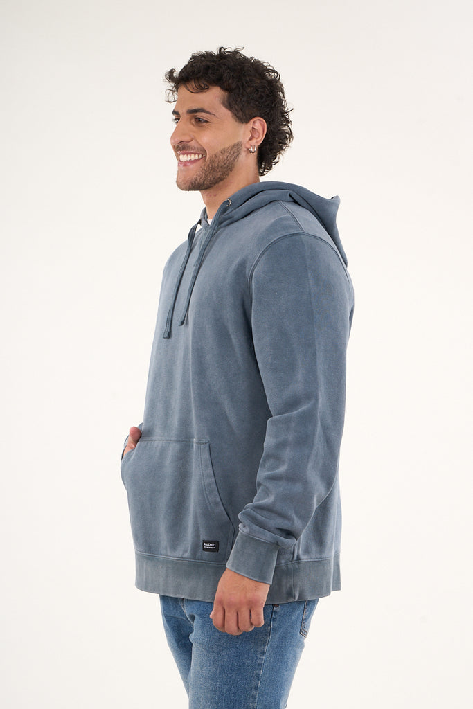 Poleron hombre sin cierre, capucha y tela procesada ideal para disfrutar en la ciudad con un estilo slow fashion. Fabricado con materiales de alta calidad y un enfoque en la durabilidad, esta poleron se convierte en tu compañero ideal para cada día.