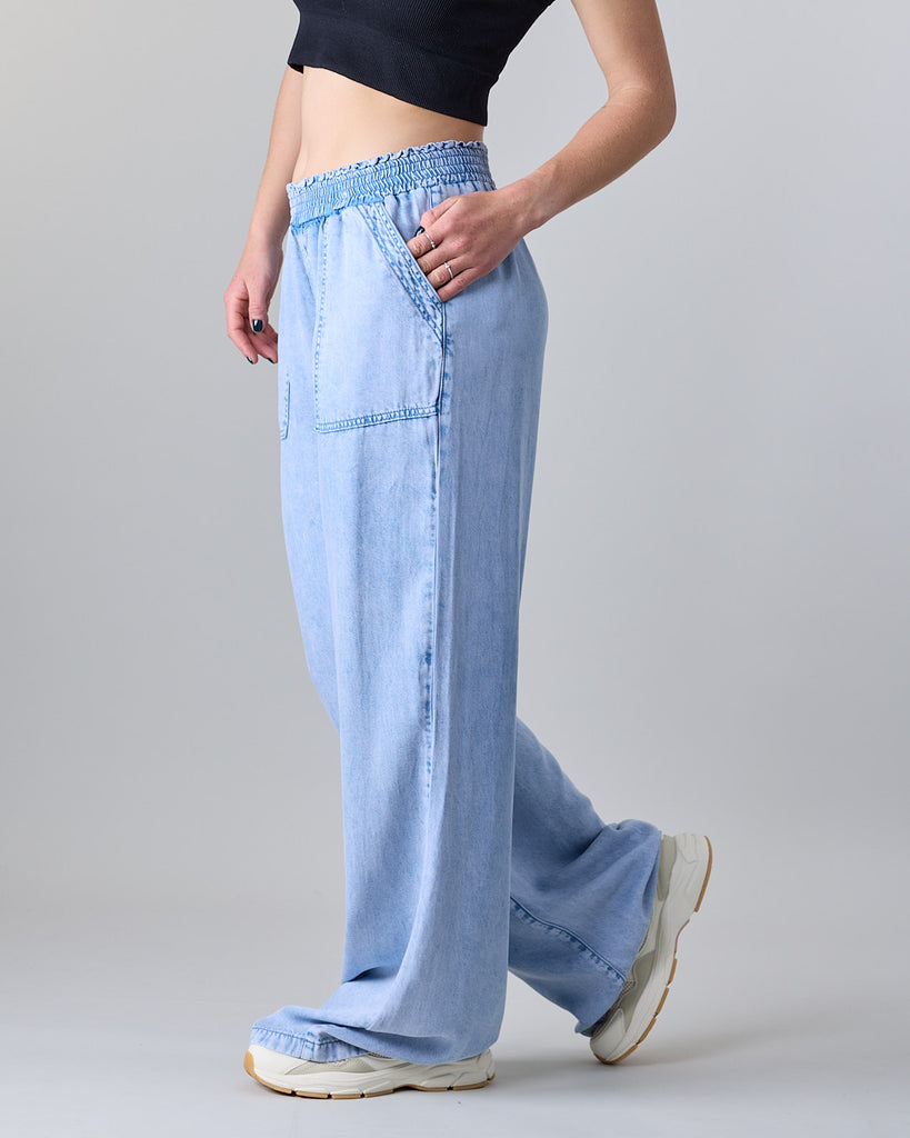 Pantalon Mujer Tencel cintura elasticada Celeste XS4761