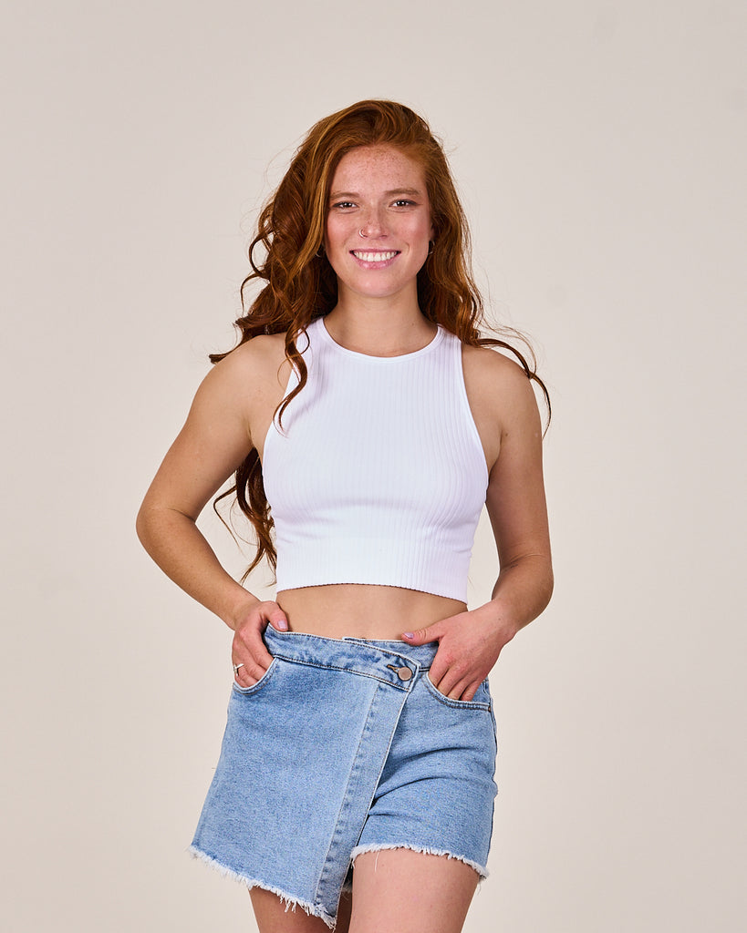 Polera mujer crop top Halter ideal para disfrutar este verano con un estilo slow fashion, fabricada con materiales de alta calidad y un enfoque en la durabilidad, esta prenda se convierte en tu compañera ideal para cada día.