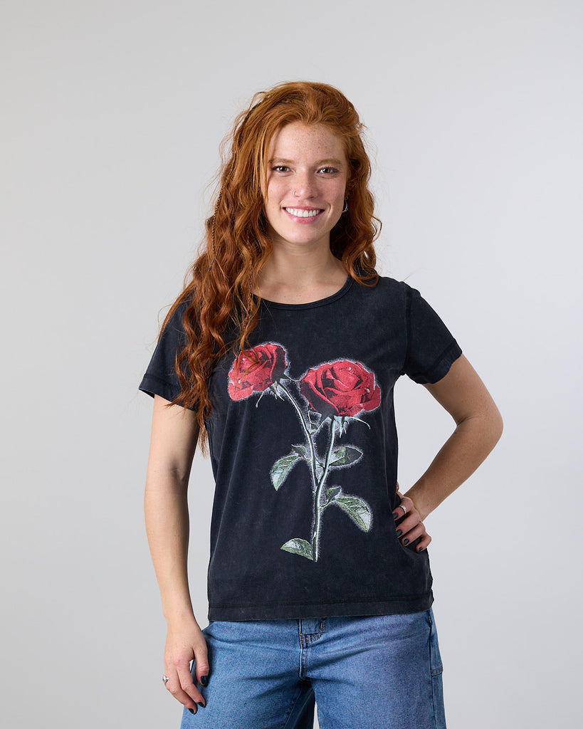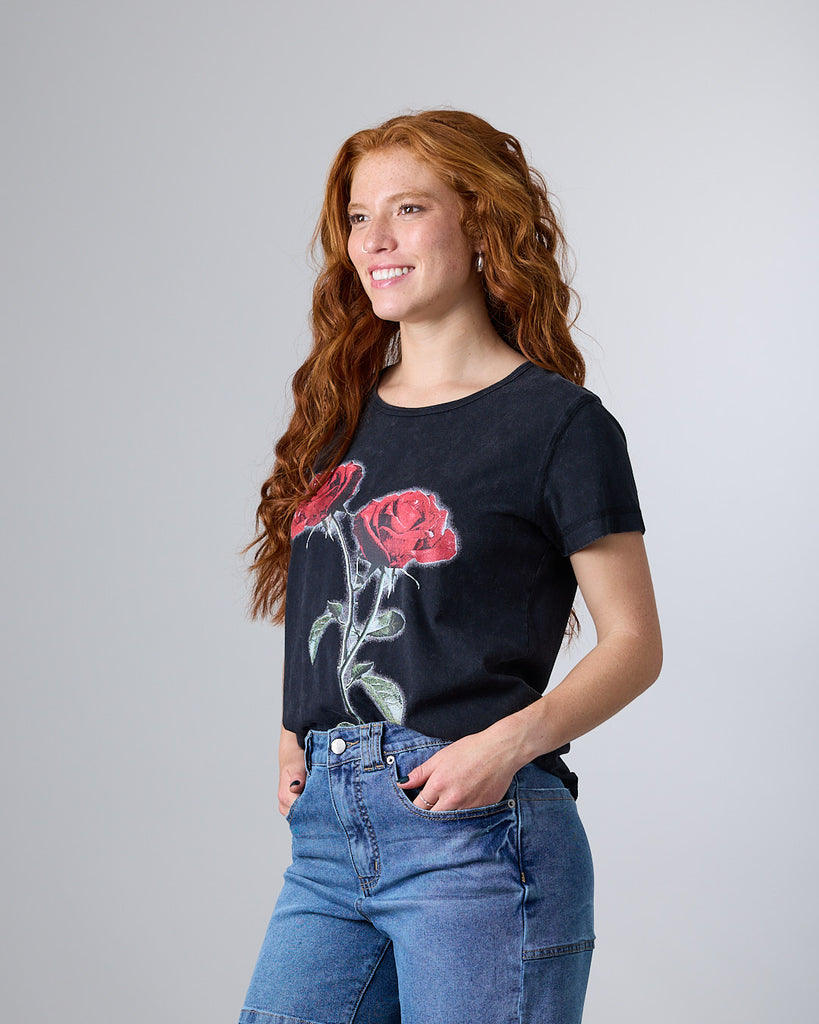 Polera mujer ideal para disfrutar este verano con un estilo slow fashion, fabricada con materiales de alta calidad y un enfoque en la durabilidad. Esta polera con estampado localizado se convierte en un básico de tu oufit