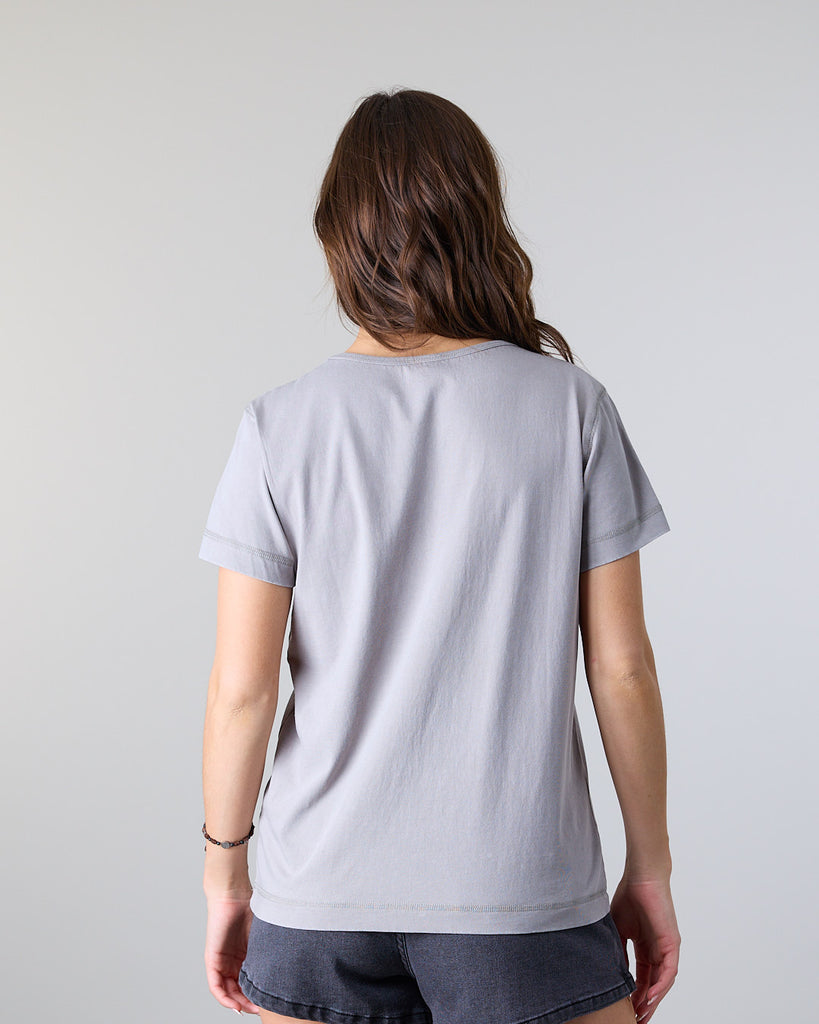 Polera mujer ideal para disfrutar este verano con un estilo slow fashion, fabricada con materiales de alta calidad y un enfoque en la durabilidad. Esta polera con estampado localizado se convierte en un básico de tu oufit