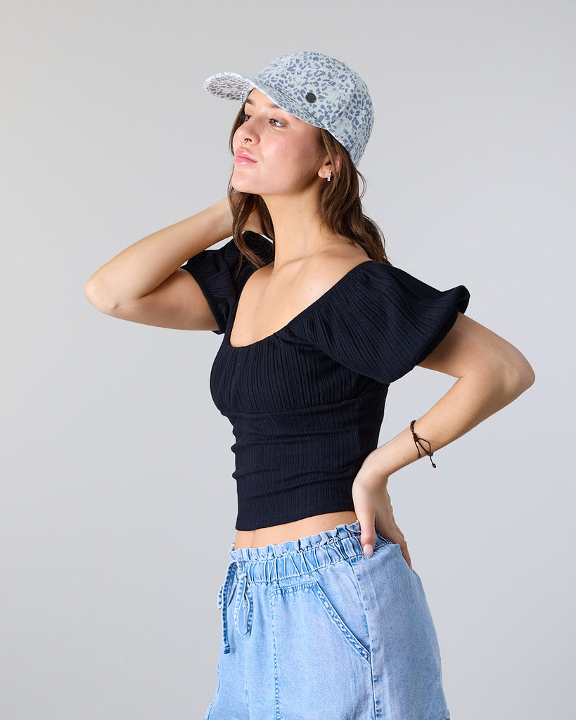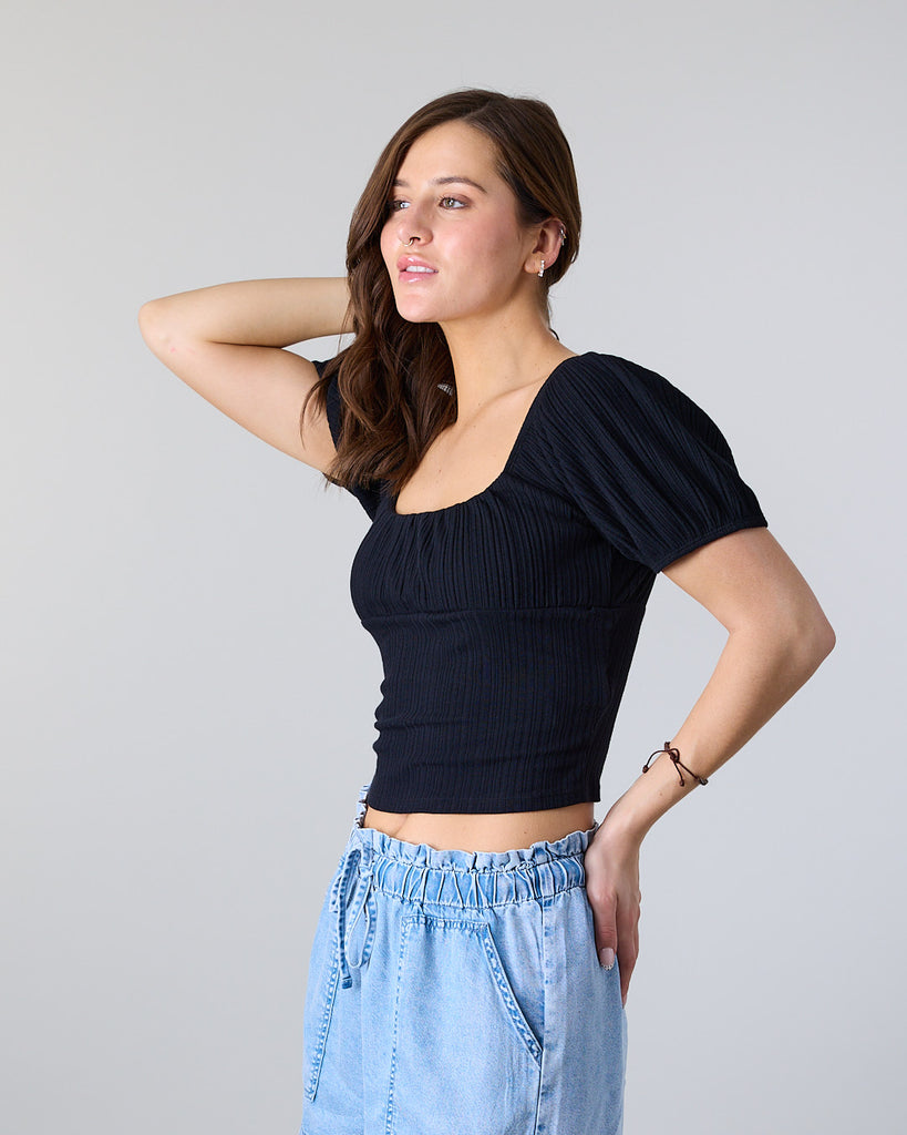 Polera Mujer manga globo Rib Fantasy XS1785 Negro