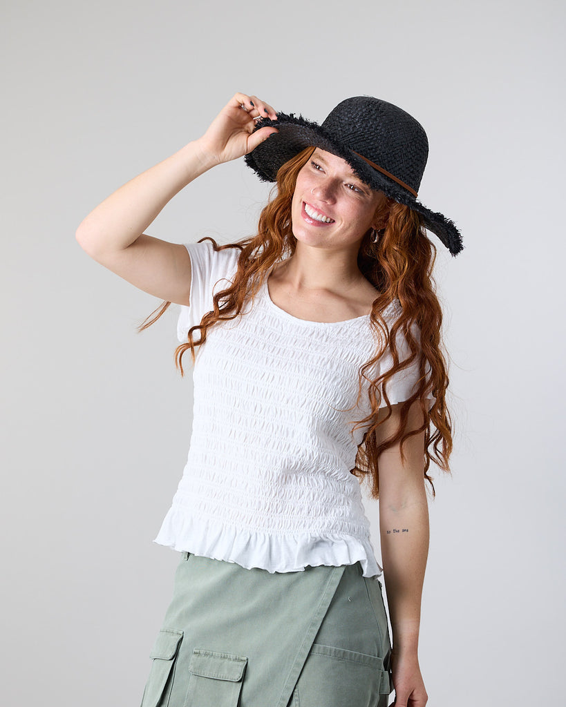Polera mujer ideal para disfrutar este verano con un estilo slow fashion, fabricada con materiales de alta calidad y un enfoque en la durabilidad. Esta polera elástica y estructura panal se convierte en un esencial de tu oufits
