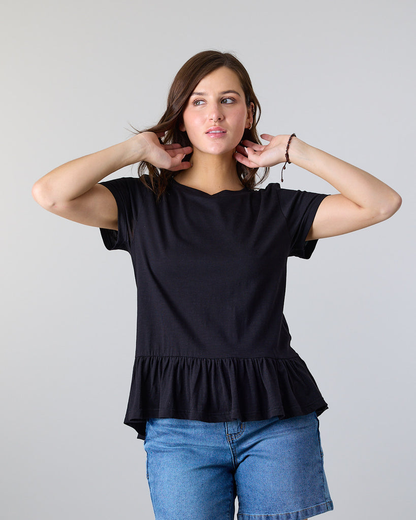 Polera Mujer ruedo con vuelos XS1787 Negro