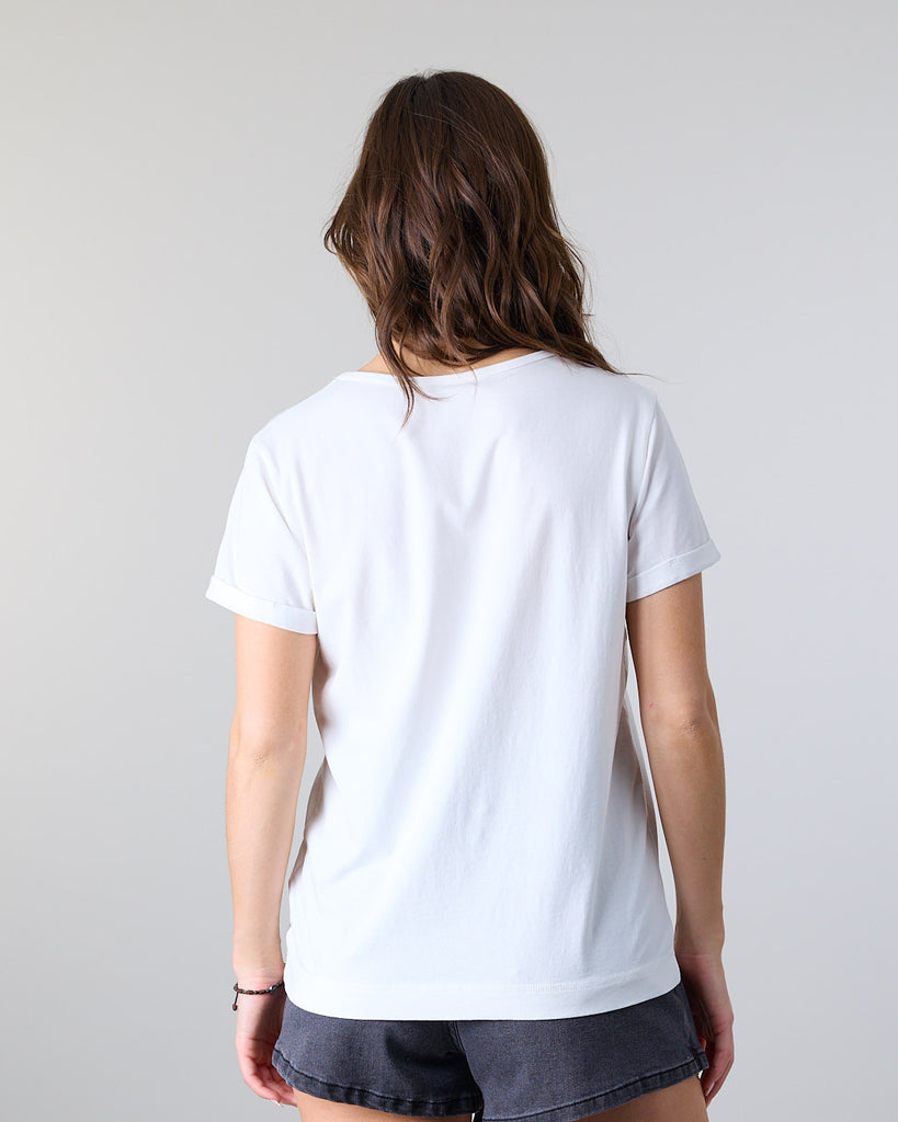 Polera mujer ideal para disfrutar este verano con un estilo slow fashion, fabricada con materiales de alta calidad y un enfoque en la durabilidad. Esta polera básica con calce Regular y aplicación strass de Estrella la convierten en un esencial de tus oufits