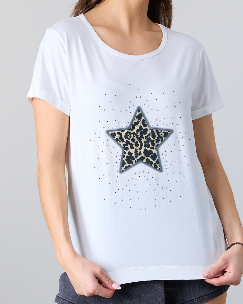 Polera Mujer Star aplicación strass XS1798 Blanco