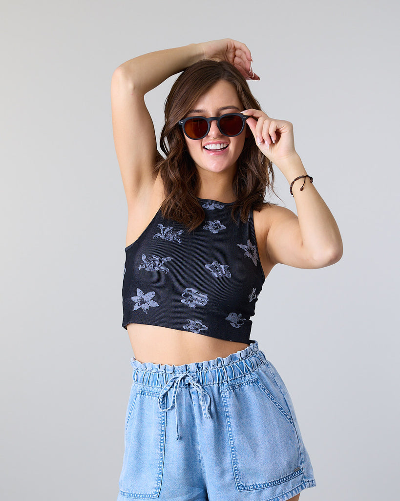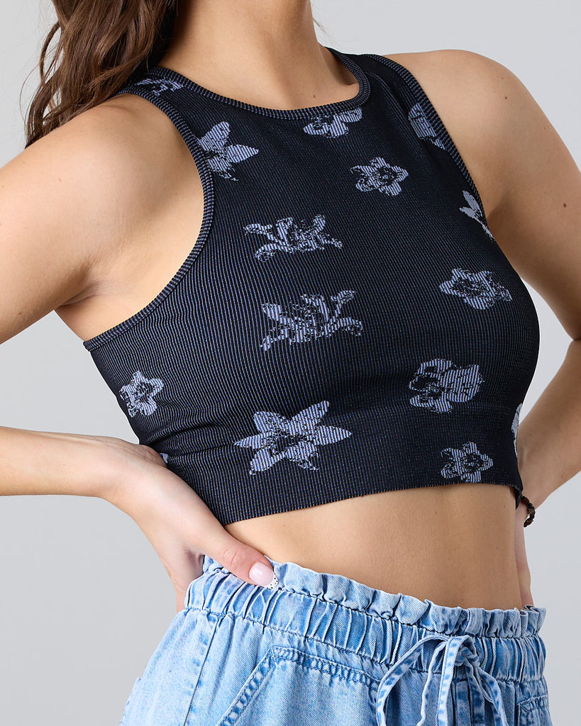 Polera Top Halter Mujer tejido print Flor XS1781 Negro