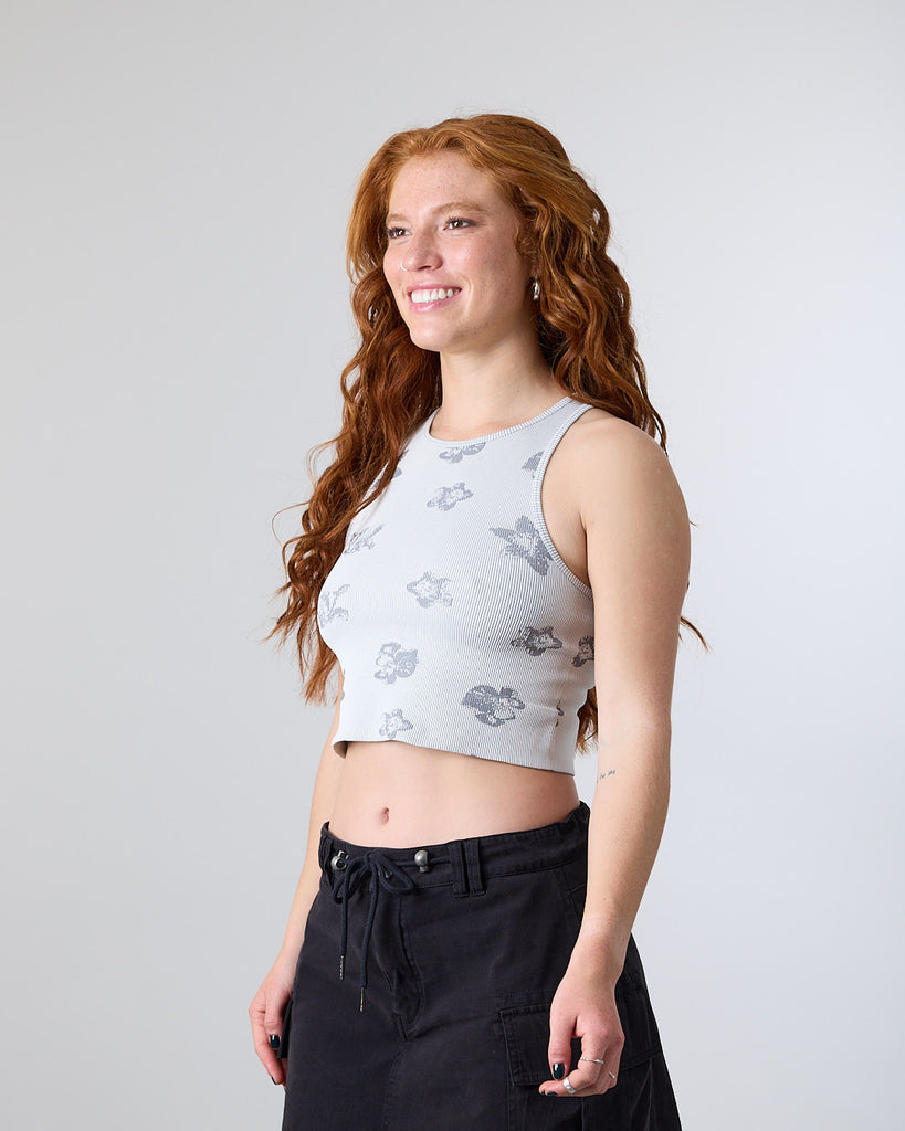 Polera Top Halter Mujer tejido print Flor XS1781 Blanco