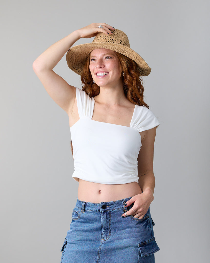 Polera mujer Top con recogido en los costados es ideal para disfrutar este verano con un estilo slow fashion, fabricada con materiales de alta calidad y un enfoque en la durabilidad, esta prenda se convierte en tu compañera ideal para cada día.