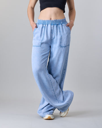 Pantalon Mujer Tencel cintura elasticada Celeste XS4761