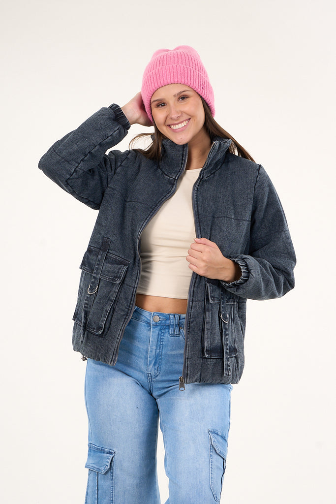 Chaqueta denim con sherpa interior Azul Oscuro VW9750
