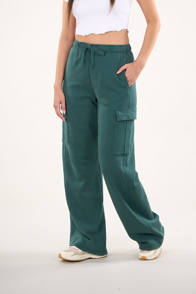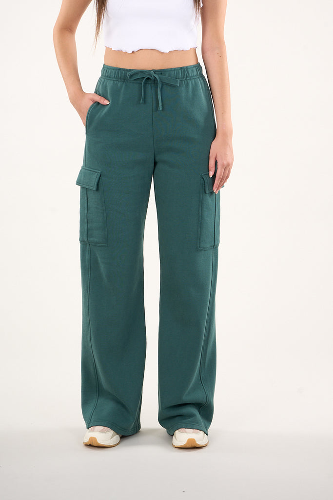 Pantalon Franela Cargo Wide Leg Verde VW4726