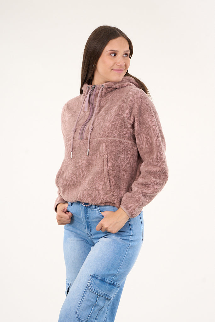 Polar mujer con medio cierre y color full print. Muy suave al tacto y cómodo de usar.