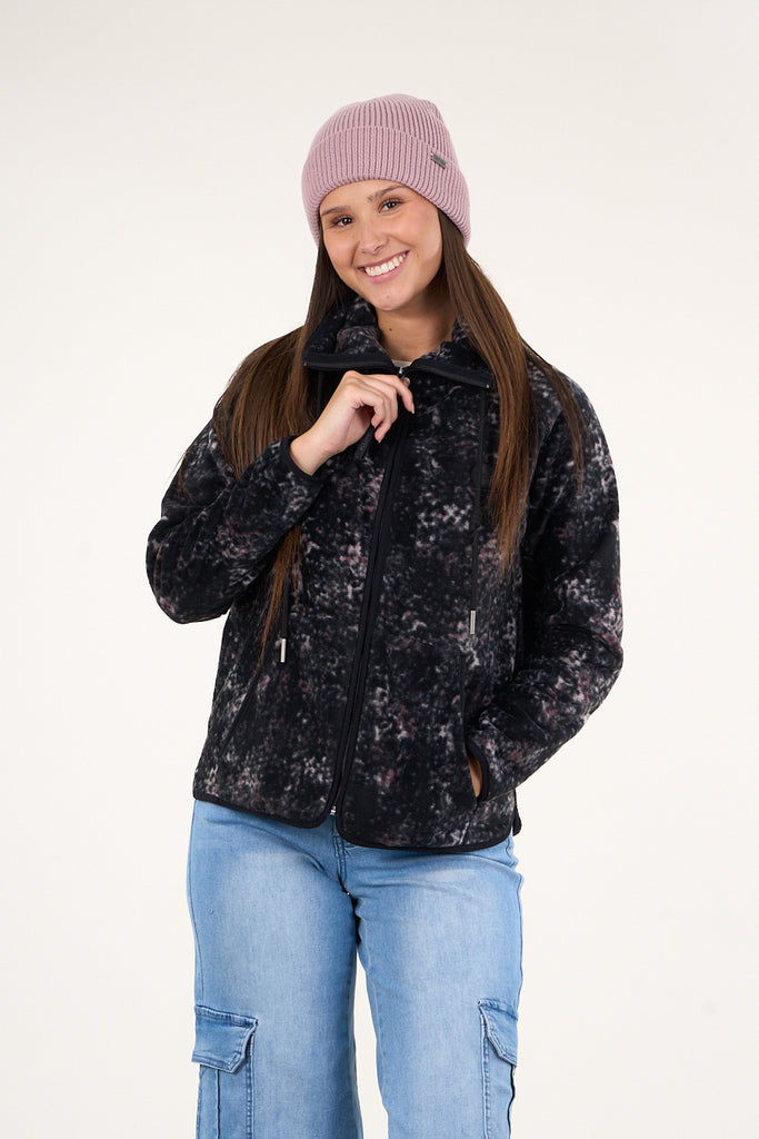 Poleron polar mujer Procesado Full Zipper Print Negro VW8762