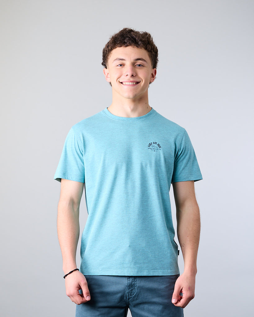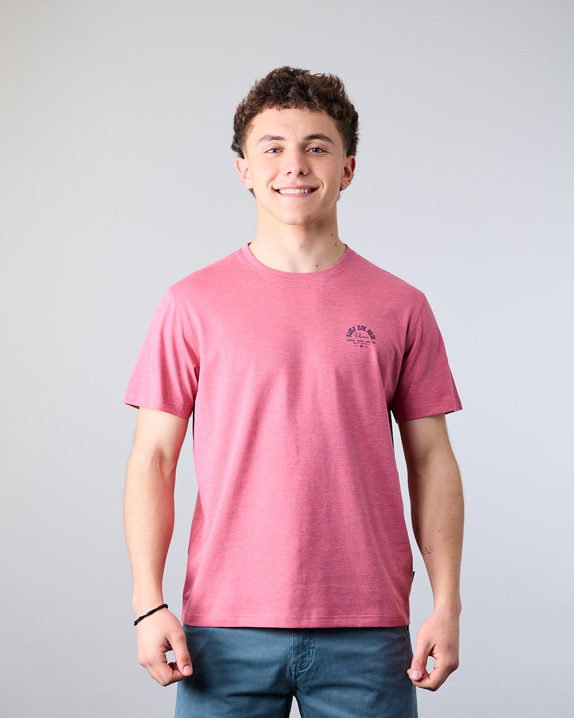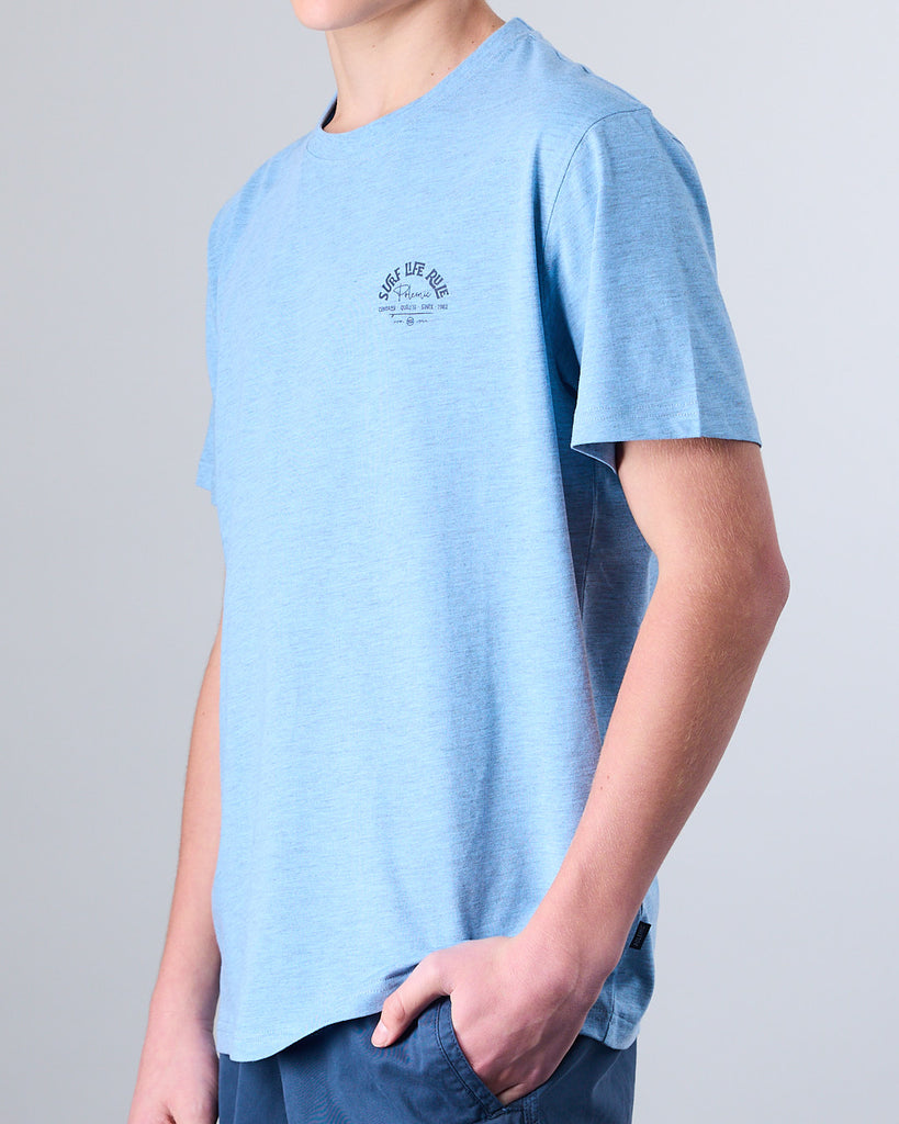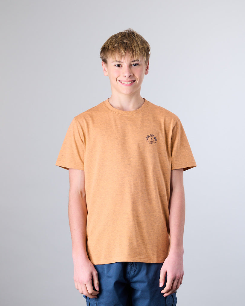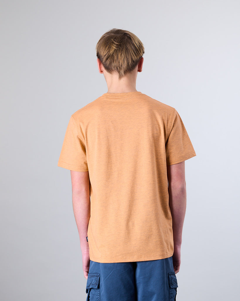 Polera manga corta Junior confeccionada con 60% algodón y 40% poliester, en color Melange. El cuello redondo clásico y calce Modern Fit la convierten en una elección ideal tanto para la ciudad como para una salida casual. El calce Modern Fit es el punto medio entre Slim Fit y corte Recto, entrega más comodidad y libertad de movimiento.