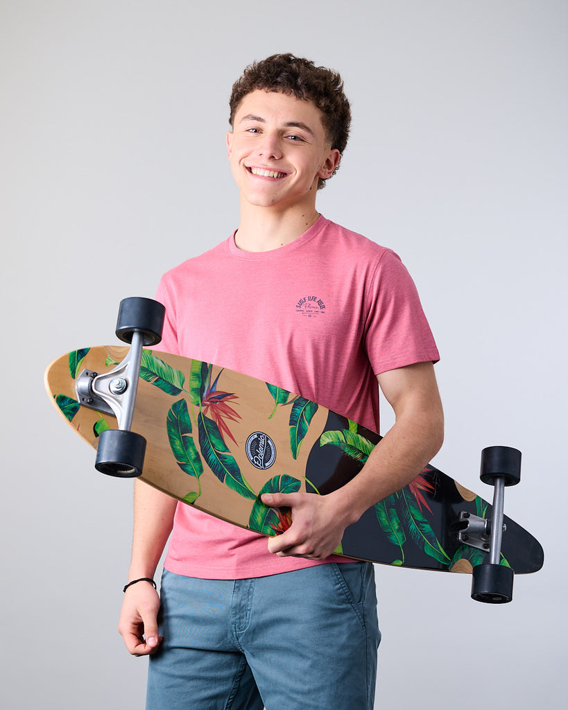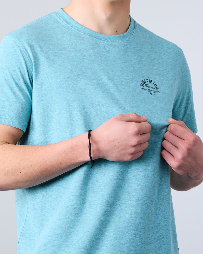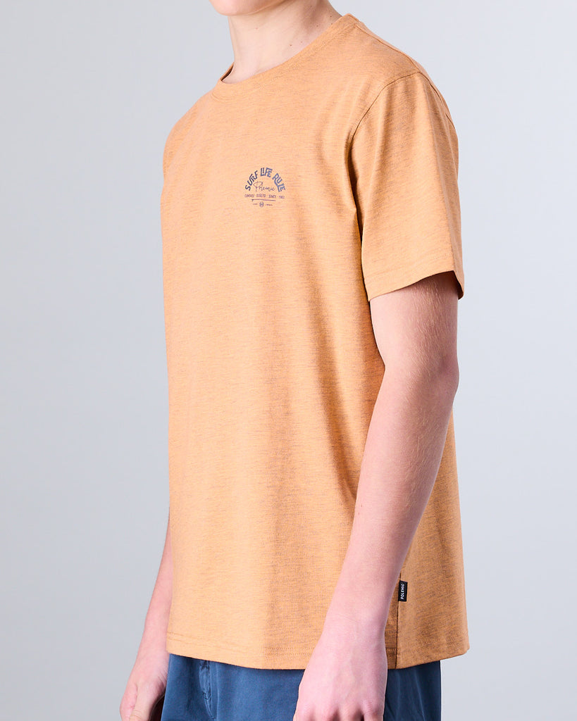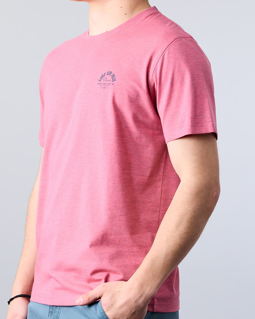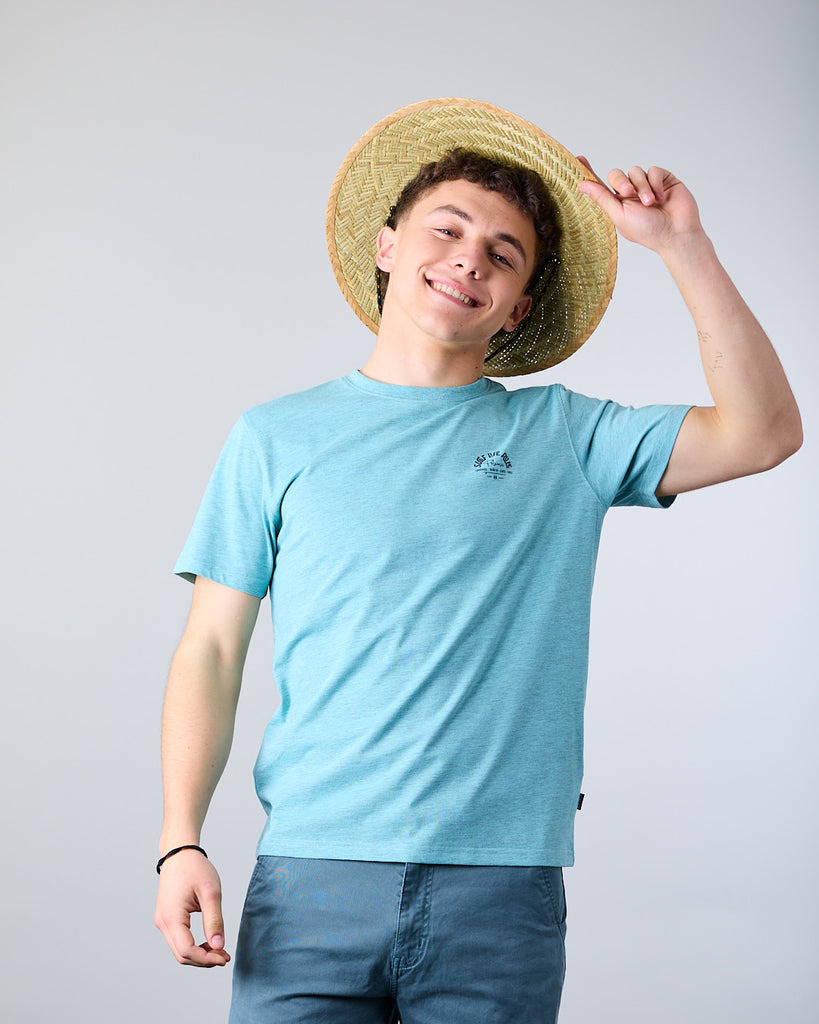 Polera manga corta Junior confeccionada con 60% algodón y 40% poliester, en color Melange. El cuello redondo clásico y calce Modern Fit la convierten en una elección ideal tanto para la ciudad como para una salida casual. El calce Modern Fit es el punto medio entre Slim Fit y corte Recto, entrega más comodidad y libertad de movimiento.