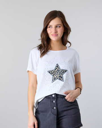 Polera Mujer Star aplicación strass XS1798 Blanco