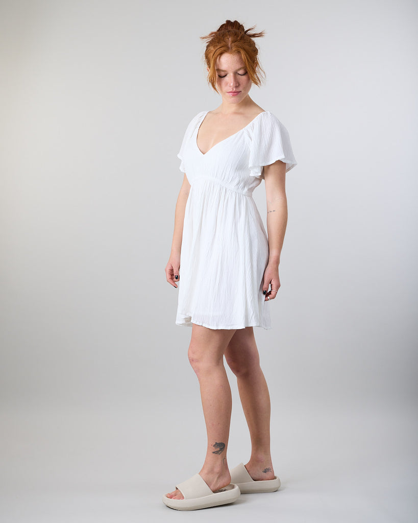 Vestido Smock Crep Manga ancha XS5724 Blanco