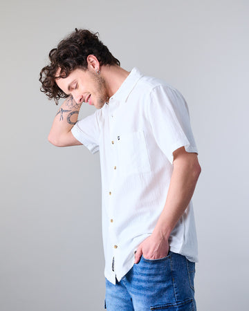 Camisa de Algodon hombre color liso, manga corta, con textura, calce Modern Fit y tela procesada es ideal para disfrutar en la ciudad con un estilo slow fashion, fabricada con materiales de alta calidad y un enfoque en la durabilidad, esta prenda se convierte en tu compañera ideal para cada día.