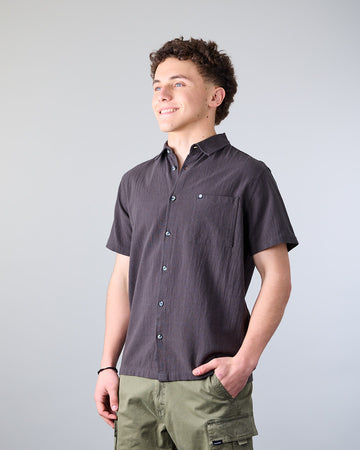 Camisa de Algodon juvenil color liso, manga corta, con textura, calce Modern Fit y tela procesada es ideal para disfrutar en la ciudad con un estilo slow fashion, fabricada con materiales de alta calidad y un enfoque en la durabilidad, esta prenda se convierte en tu compañera ideal para cada día.