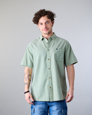 Camisa manga corta Hombre Algodón Tencel Verde XV5781