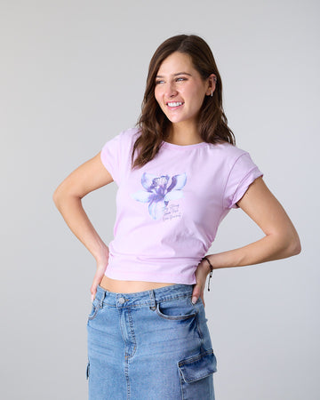 Polera mujer ideal para disfrutar este verano con un estilo slow fashion, fabricada con materiales de alta calidad y un enfoque en la durabilidad. Esta polera con print localizado se convierte en un básico de tu oufit
